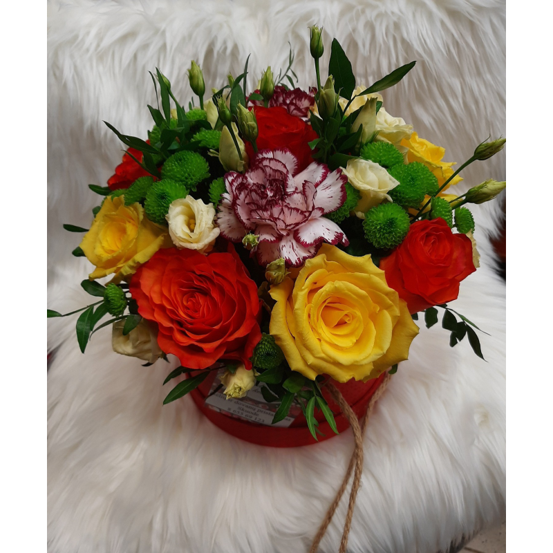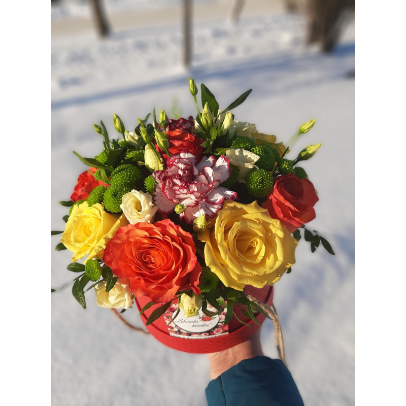 Įvairiaspalvė puokštė dėžutėje